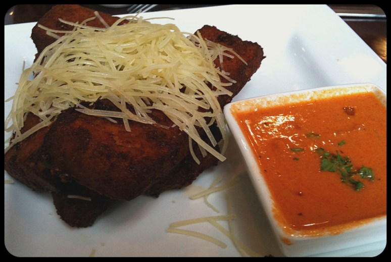 Sava’s has quite a wide variety of drinks, broken down into The Novice, The Purist, and The Progressive. Fred and I are working our way through the list, bit by bit. Today, we got the adorably named “Suddenly, Last Summer,” and the classic, creamy “Brandy Alexander.” Both were delicious, and the Brandy Alexander was even on special, coming to an unbelievable $3! We also got some snacks to go along with our drinks, and they were both delicious. The ravioli was so smooth and flavorful!