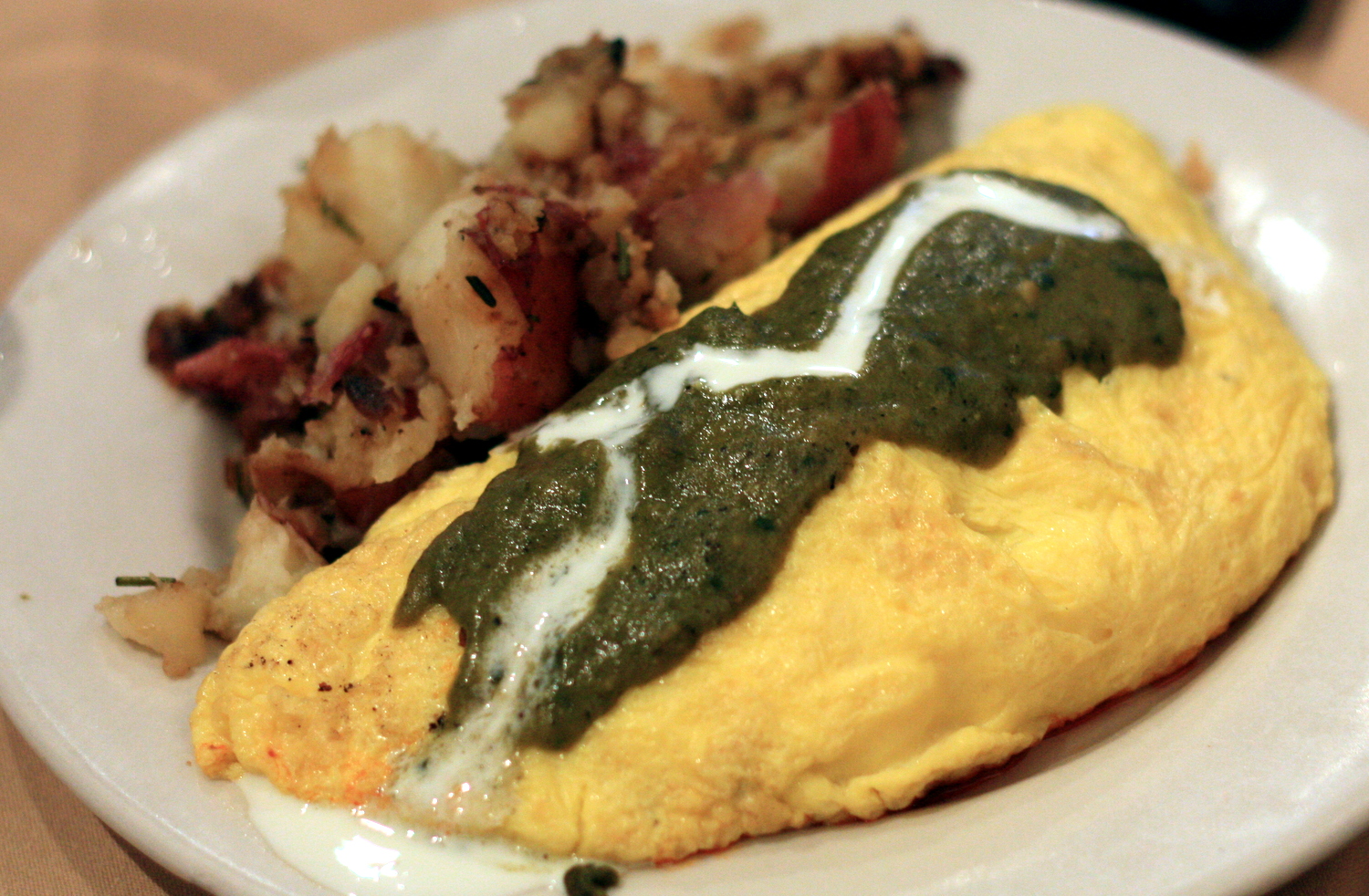 I love interesting light fixtures. Cafe Zola is often cited as being one of the best brunch places in town, and while there’s always a wait on the weekends, I believe it’s worth it. Their Southwestern Omelette, is “filled with chorizo, roasted poblano chiles, sour cream, pico de gallo, and topped with Jason’s Spicy Green Chile Sauce.” It’s bursting with flavor and very filling!