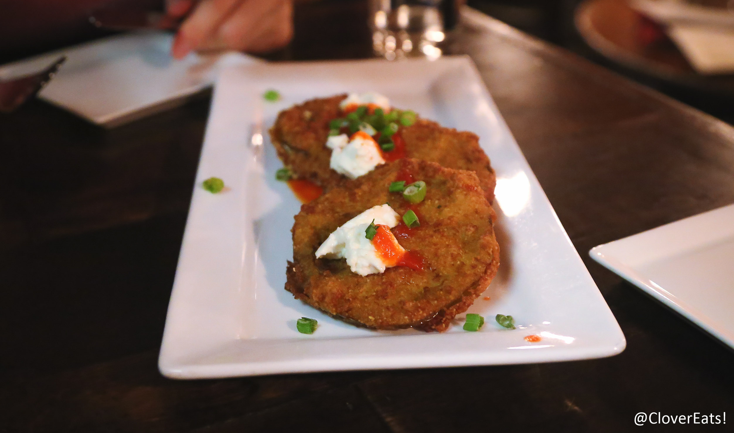 Once we were seated, we started off the night with some refreshing cocktails and fried green tomato appetizers. These were delicious, hot and savory little bites.