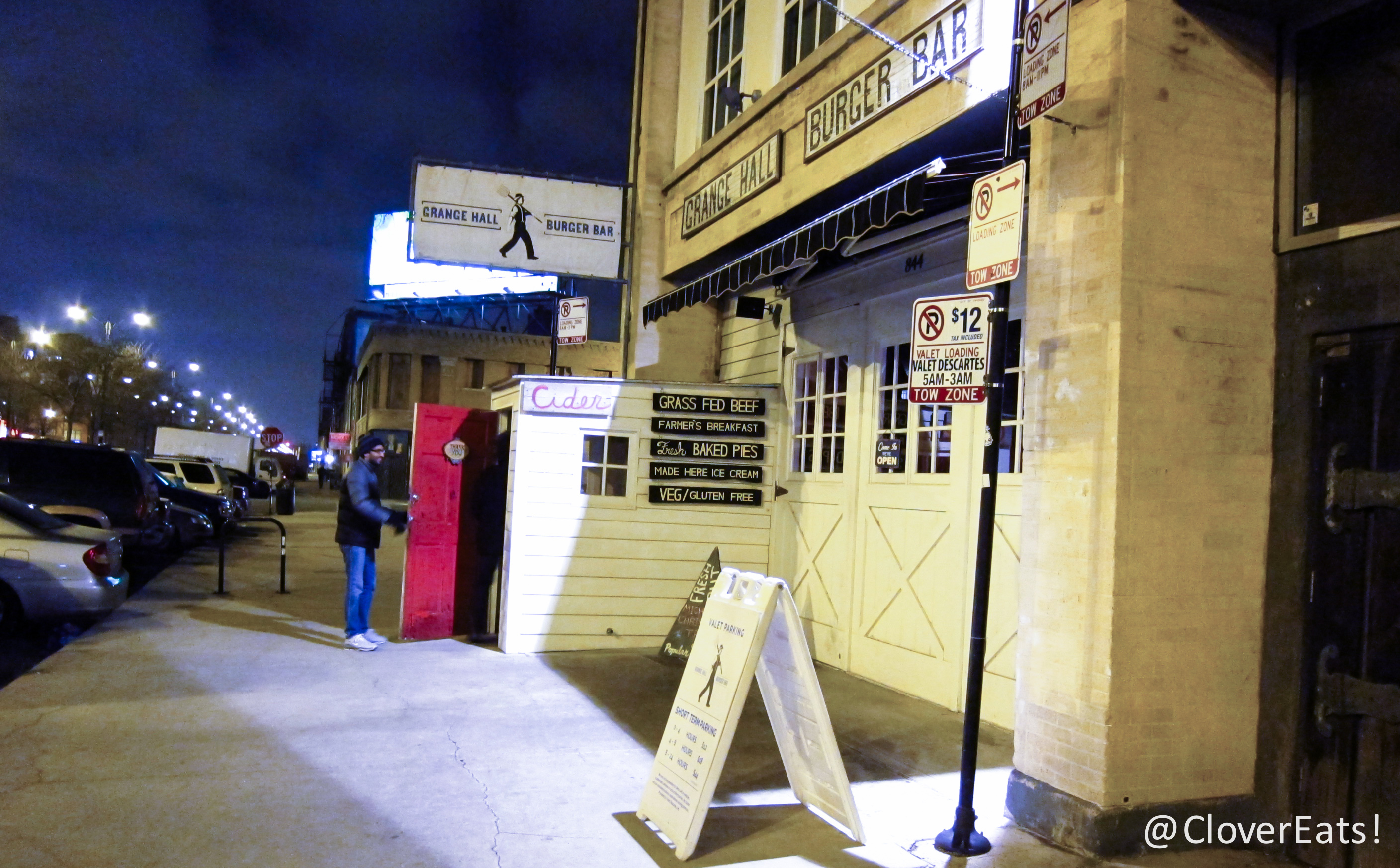 It’s been a really chilly couple of days. However, it’s the holiday season, so I’m able to meet up with friends that I usually don’t get to see. To celebrate, we originally tried to go to Au Cheval, but were told to expect at least a 3 hour (!!!) wait. So instead, we opted to trek all the way across Randolph in the cold, to the Asian Fusion restaurant bellyQ that is at the very end of the street. When we arrived, having passed many a tasty option on the way down there, we were greeted with a big closed sign. Apparently, both bellyQ and its little sibling restaurant Urbanbelly are closed Thanksgiving week. So we walked all the way back up Randolph, stopping in the occasional restaurant’s outdoor shelter to peruse menus and warm up. Eventually, through the combined efforts of Yelp and crowds, we ended up at Grange Hall Burger Bar.