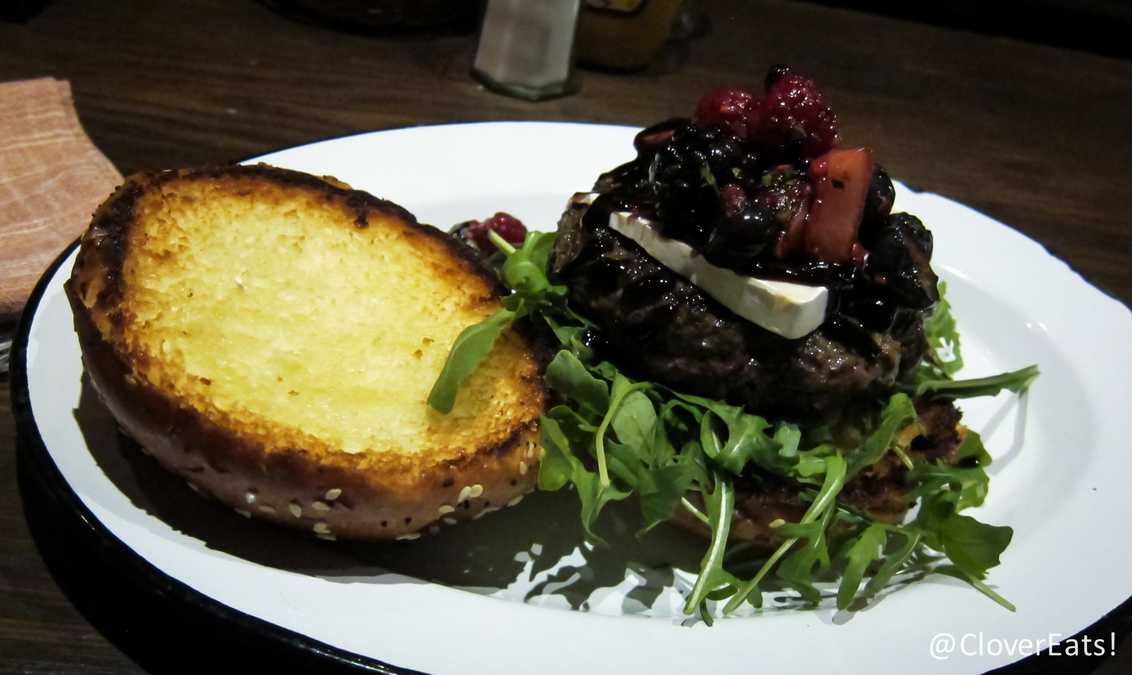 I got the Berries and Brie burger (grassfed beef, Brie, arugula, mixed berry compote, Dijon aioli, red wine balsamic reduction). I was very excited to try this, eager to see how they made brie and sweets work on a burger. Unfortunately, my instinct was correct in assuming that no, these do not harmonize. My burger was confusing, with bits of sweet, juicy berries interspersed with meaty, juicy patty – both were delicious on their own but just didn’t taste good together.
